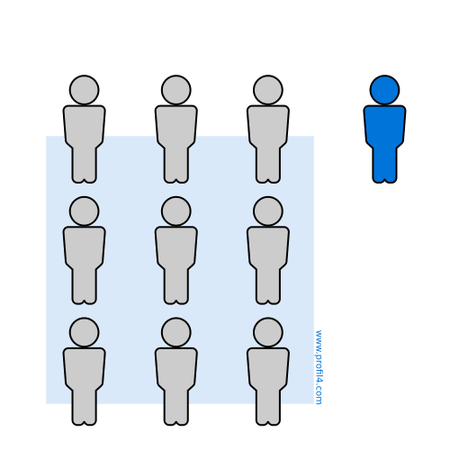 In a group: they associate with every member of their teams and know plenty of details and anecdotes about them. They enjoy being the center of attention. They see themselves as the focus of the group, right in the middle. They make good salespeople.